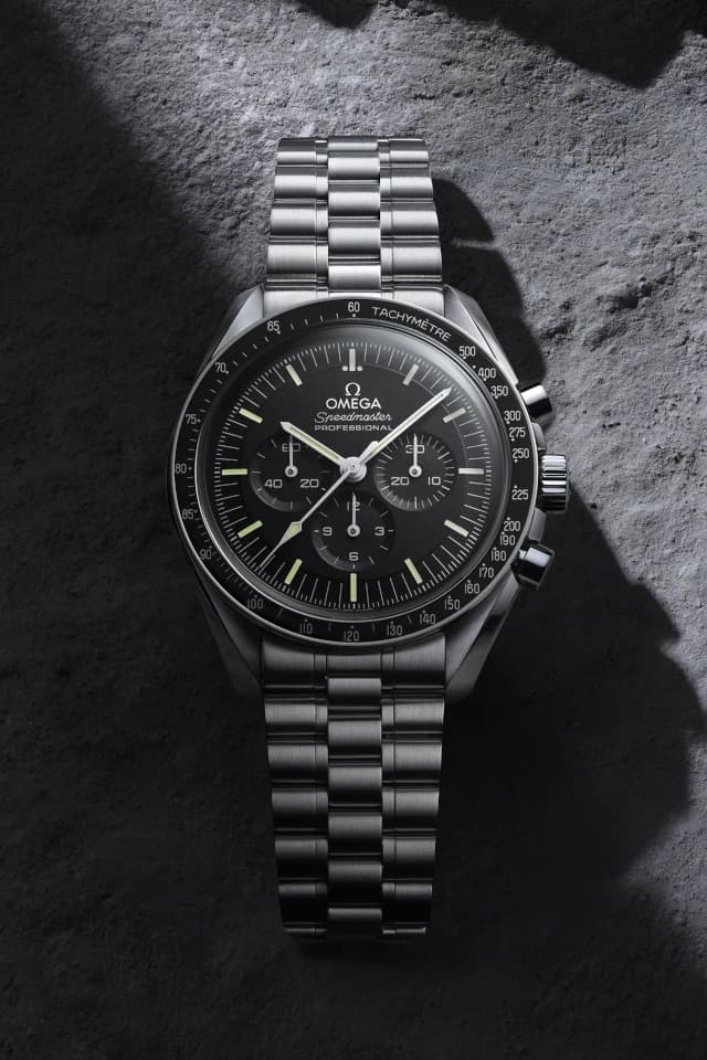 1965 wurde die Speedmaster nach intensiven Tests schließlich zur offiziellen Uhr der NASA für alle bemannten Raumfahrtprogramme erklärt. Vier Jahre später, am 20. Juli 1969, schrieb sie endgültig Geschichte: Astronaut Buzz Aldrin trug seine Speedmaster während der Apollo-11-Mission auf der Mondoberfläche – ein Augenblick, der der Uhr den legendären Beinamen "Moonwatch" einbrachte. Seither ist die OMEGA Speedmaster untrennbar mit der Geschichte der Raumfahrt verbunden – ein Symbol für technische Präzision, Ausdauer und Pioniergeist, das seinen Weg von der Rennstrecke über den Orbit bis hinunter auf die staubige Oberfläche des Mondes fand.