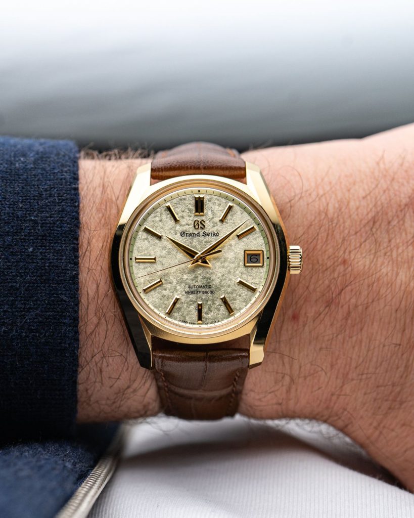 Im Inneren schlägt das Hochfrequenz-Kaliber 9S85, das von den Meisteruhrmachern des Grand-Seiko-Studio Shizukuishi gefertigt wird. Mit einer Frequenz von 36.000 Halbschwingungen pro Stunde erreicht das Werk eine stabile Präzision von -3 bis +5 Sekunden pro Tag. Ein Armband aus braunem Krokodilleder mit einer passenden Schließe aus 18K Gelbgold rundet das elegante Erscheinungsbild ab. Mit einem Durchmesser von 38 mm und einer Wasserdichtigkeit von 10 bar ist die SBGH376 eine zeitlose Dresswatch, die höchste japanische Handwerkskunst verkörpert.