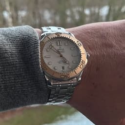 Ich habe diese Uhr bereits letzten Jahr mehrfach am Arm gehabt und sie ging mir einfach nicht aus den Kopf. Ich bin jetzt nicht der absolute Olympia Fan, aber die Materialkombination in Verbindung mit den Details der Uhr sind das was mich so fasziniert hat.