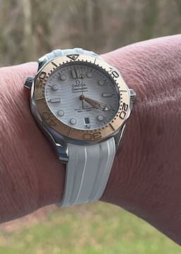 Ich habe die Uhr jetzt knapp 2 Woche und habe sie direkt mit dem passenden Kautschukband bei Altherr erstanden. Dann beide Bänder mehrere Tage getragen um einen besseren Eindruck zu bekommen. Beide Bänder tragen sich hervorragend.