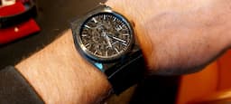 Die Uhr ist mit einem schwarzen Kautschukarmband ausgestattet, das einen hohen Tragekomfort garantiert und perfekt zum sportlich-dynamischen Stil des Carbon-Gehäuses passt. Das Material ist robust, widerstandsfähig und angenehm flexibel. Dank Schnellwechselsystem lässt sich das Armband im Handumdrehen ohne Werkzeug austauschen, wodurch die Uhr vielseitig individualisierbar ist. Die Dornschließe gewährleistet sicheren Halt am Handgelenk. Die Kombination aus schwarzem Kautschuk und Carbon-Gehäuse unterstreicht den modernen Charakter dieser Uhr und macht sie zum idealen Begleiter im Alltag sowie bei sportlichen Aktivitäten.