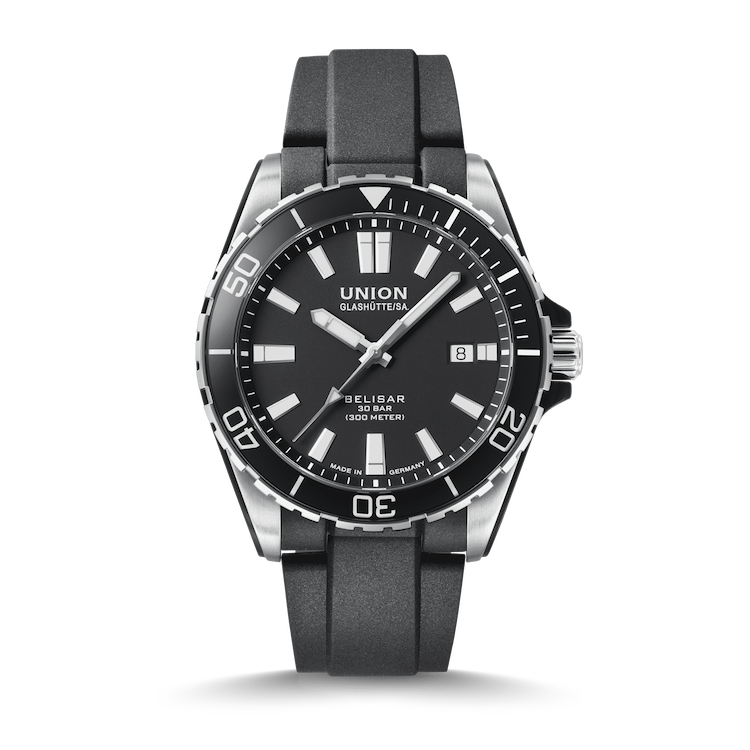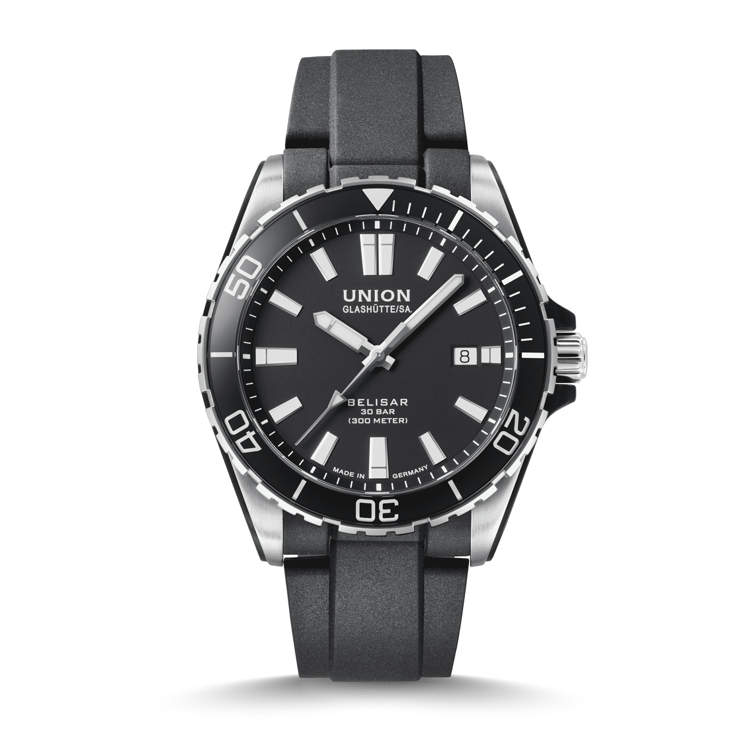 Aktuell ist mir keine robustere mechanische Uhr bekannt: sowohl Glas als auch Lünette und Boden sind aus synthetischem Saphir gefertigt und somit (fast) unkaputtbar. Die exponierten Flanken sind DLC-geschützt, diese Beschichtung haben andere Uhren zwar auch, da aber das Gehäusematerial von Taucheruhren (hier 316L) duktil sein muss, kann es passieren, dass die Beschichtung bei groben Stößen vor allem an Kanten abplatzt. Kein Problem für die Belisar, sie hat einen DLC-beschichteten Flankenschutz, der aufgeschraubt ist und bei Beschädigung einfach ausgetauscht wird. Genial.